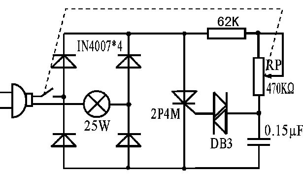 家用調(diào)光臺(tái)燈電路實(shí)驗(yàn)電路原理圖: